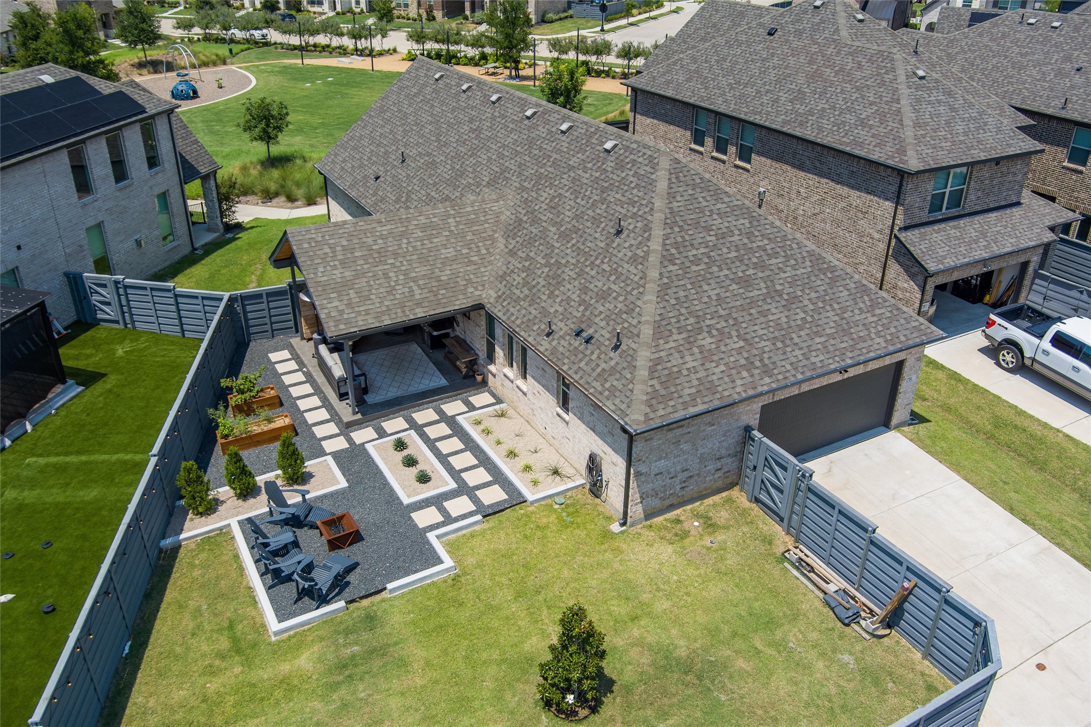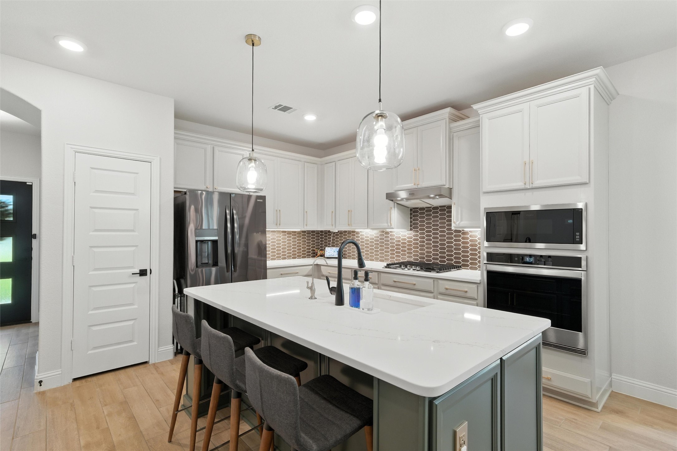 Beautifully Updated Home on Cul-De-Sac with Park Just Steps from Your Front Door! Welcome to this beautiful, maintained 3-bedroom, 2-bathroom home with a dedicated office, located on a quiet cul-de-sac with its own dedicated park just steps from your front door! You'll fall in love with the stunning kitchen, thoughtfully designed with quartz countertops, a designer backsplash, gold cabinet hardware, a huge eat-in island, stainless steel appliances, and a gas cooktop--a perfect space for both daily living and entertaining. A reverse osmosis water filter adds extra convenience and peace of mind. The home offers two spacious guest bedrooms, ideal for family, guests, or flex space, and a generously sized primary suite that serves as a peaceful retreat. The ensuite bathroom is beautifully appointed with a separate soaking tub and shower, offering both luxury and functionality. Step outside into your gorgeous, professionally manicured pool size backyard, which is larger than most in the area--providing plenty of space for kids, pets, gardening, or entertaining. The covered patio allows for year-round outdoor enjoyment.