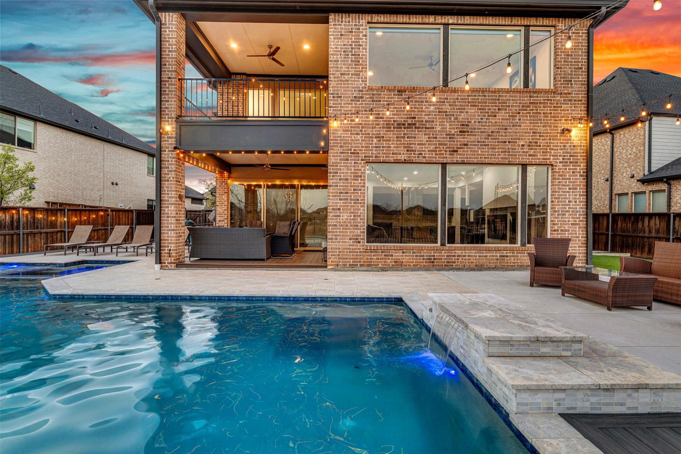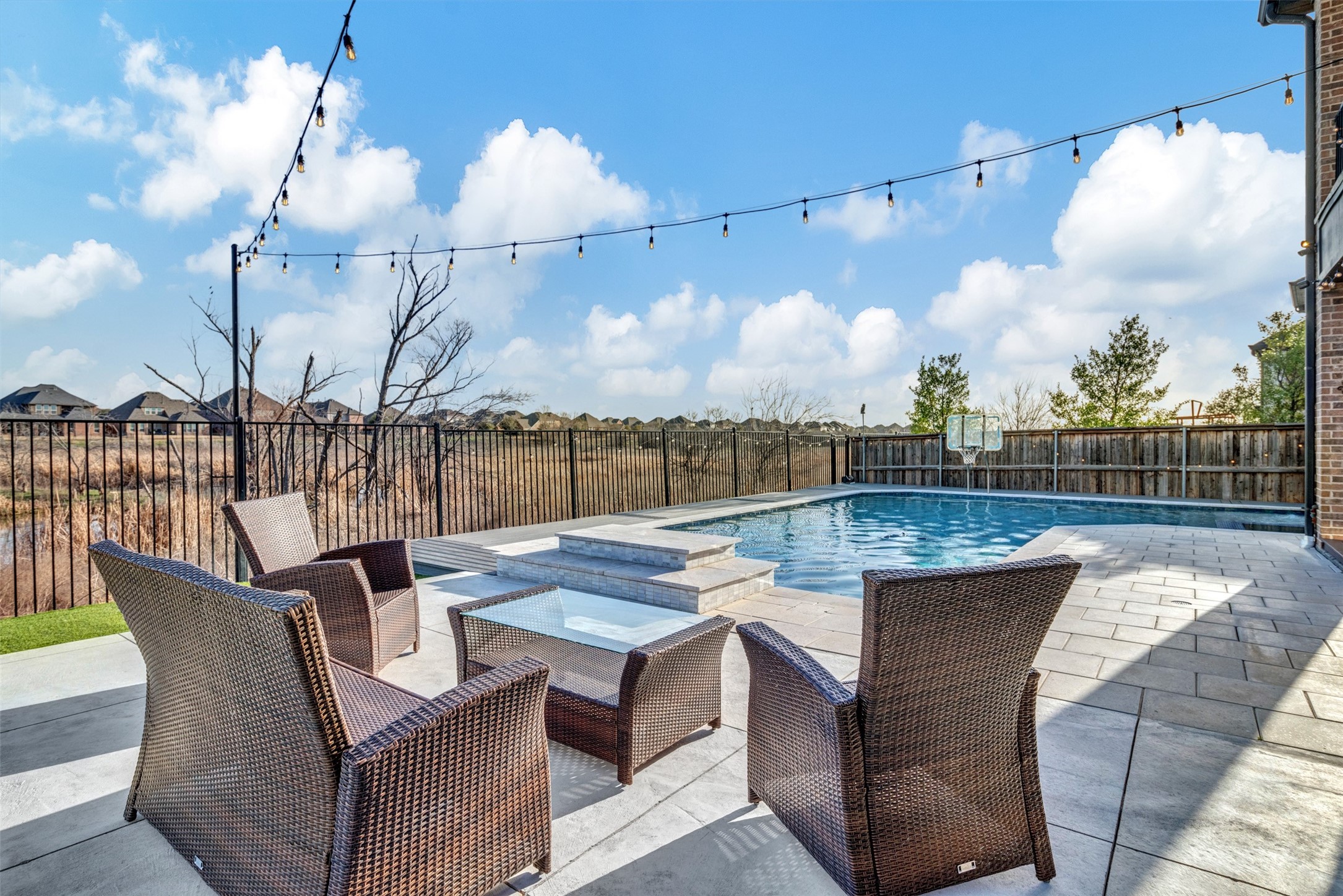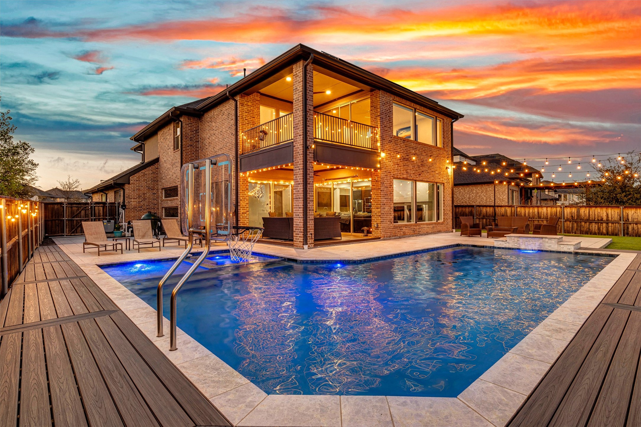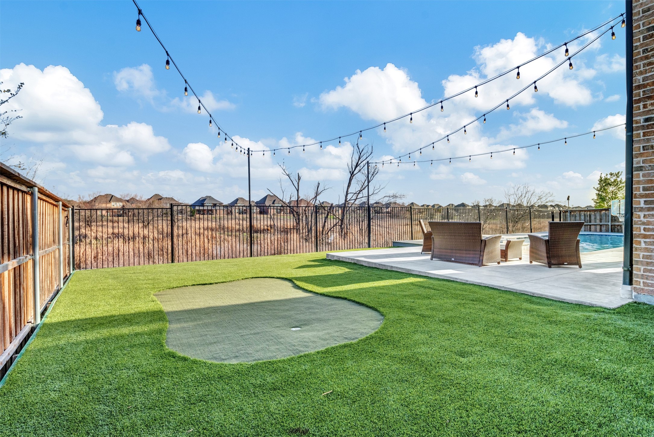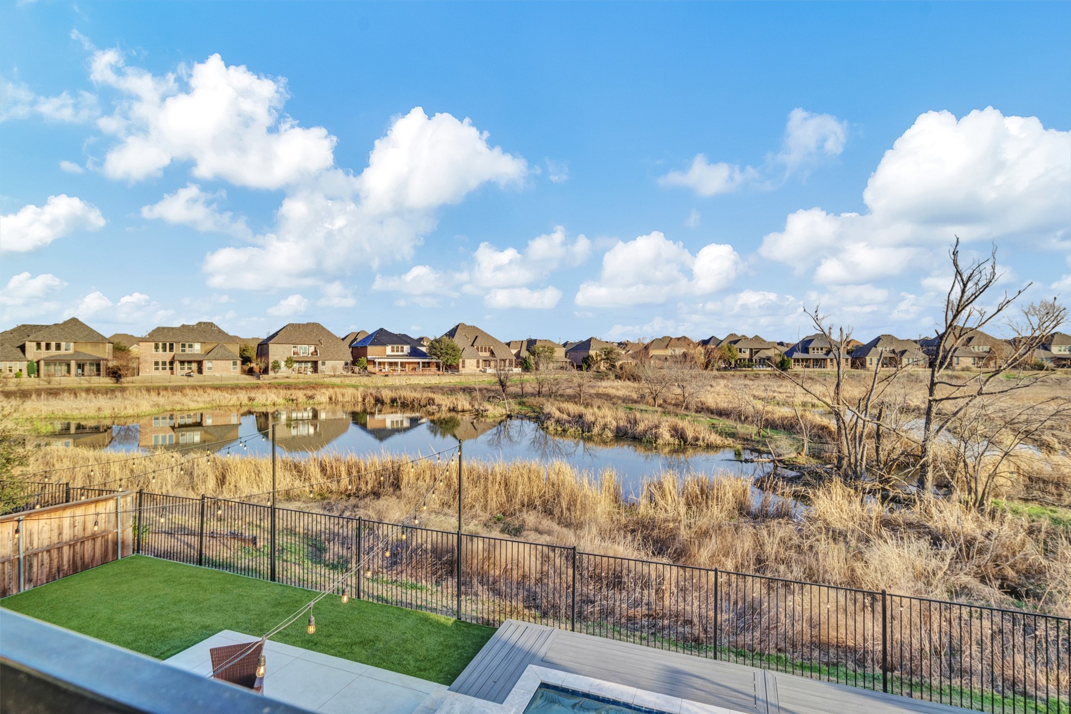 Nestled in a serene and sought-after Phillips Creek Ranch neighborhood in Frisco, this modern home sits on a premium lot that backs up to a peaceful greenbelt and pond. Featuring 5 bedrooms, 6 baths, an office, media room, game room, and a 3-car garage equipped with an electric car charging station, this home offers both luxury and functionality. On the main floor, you will find a dedicated office, media room, guest bedroom, and full bath. Additionally, the home is equipped with ENERGY-SAVING SOLAR PANELS that are PAID OFF providing a more sustainable and cost-efficient living experience! At the heart of the home lies the chef-inspired kitchen, complete with stainless steel appliances, including a gas stovetop, double ovens, microwave, refrigerator, large walk-in pantry, and an enormous center island. The kitchen seamlessly flows into the living room, which features a cozy fireplace and sliders that open up to your OUTDOOR OASIS, complete with an INVITING POOL and PUTTING GREEN--perfect for entertaining and relaxing. Upstairs, you'll find a spacious game room with a wet bar and beverage area, as well as 3 guest bedrooms. The primary bedroom overlooks the backyard and includes a private balcony, offering a peaceful retreat. The primary bathroom features a freestanding bathtub, a huge walk-in shower, and a generously sized walk-in closet--creating the perfect spa-like experience. Based on feedback, the SELLER IS OFFERING A $15K INTERIOR PAINT CREDIT to help make the home even more perfect for the buyer! Phillips Creek Ranch offers many amenities, including parks, playgrounds, walking and biking trails, a fitness center, and much more! This home is also just minutes from Dallas North Tollway and Sam Rayburn Tollway. Schedule your private showing today!