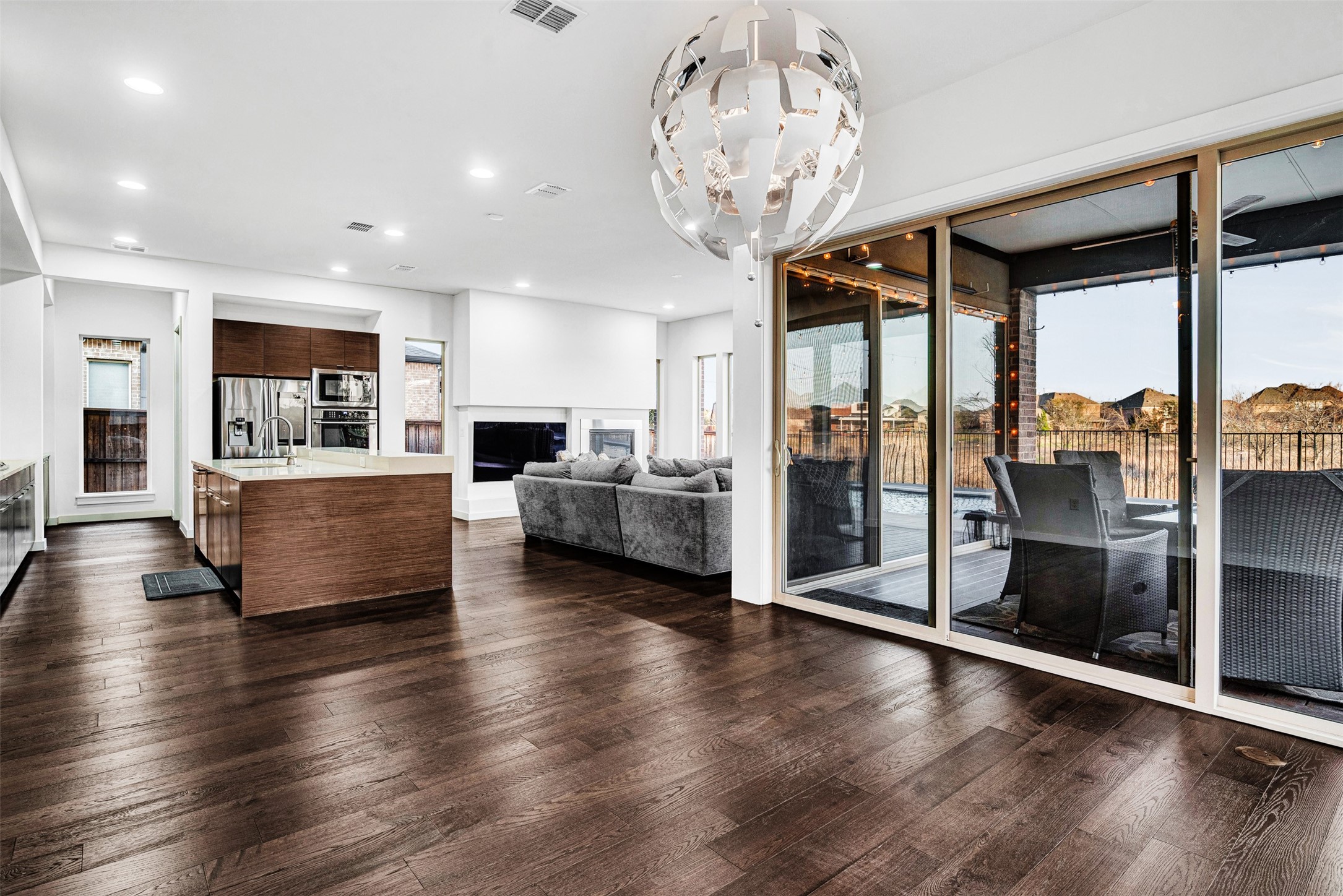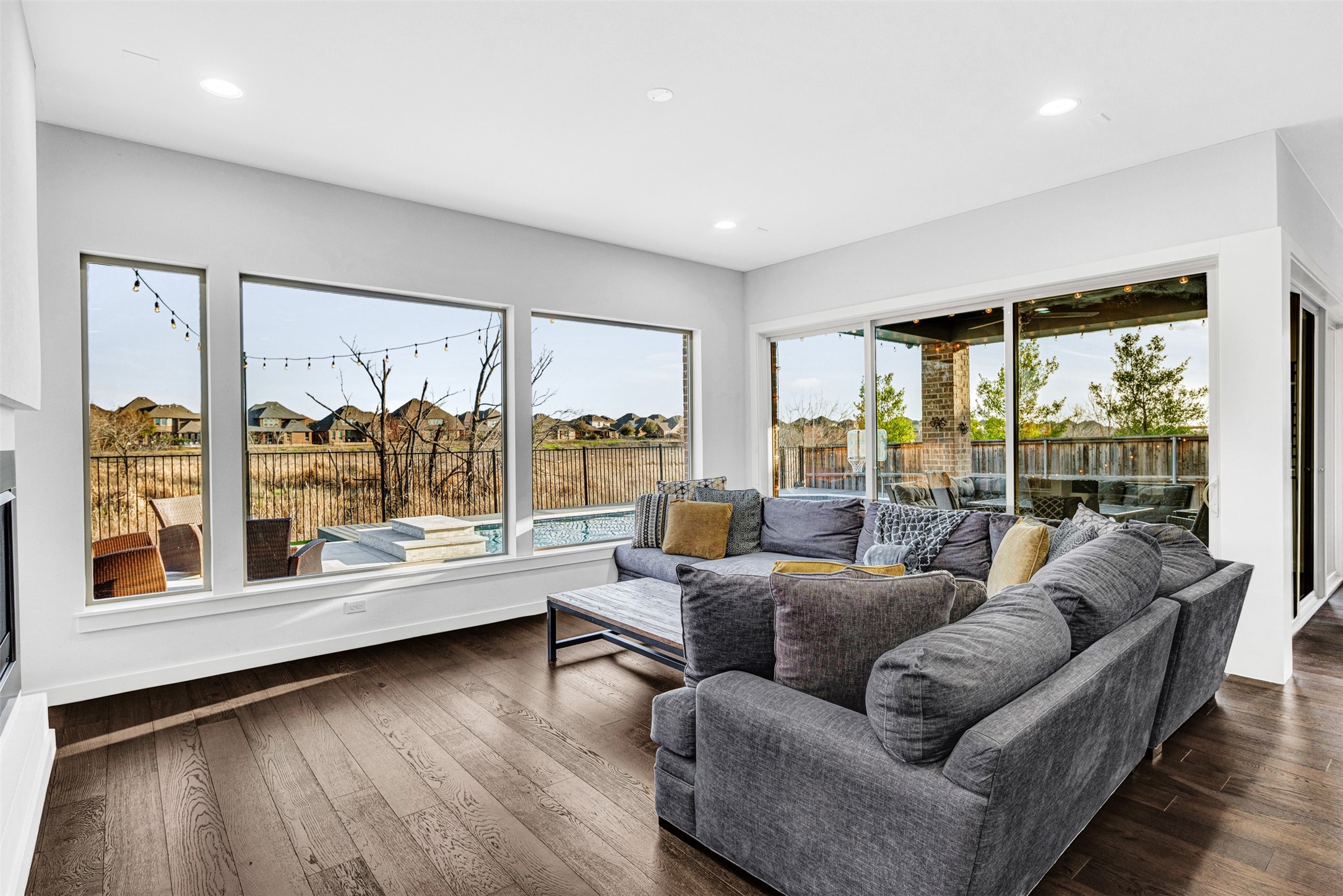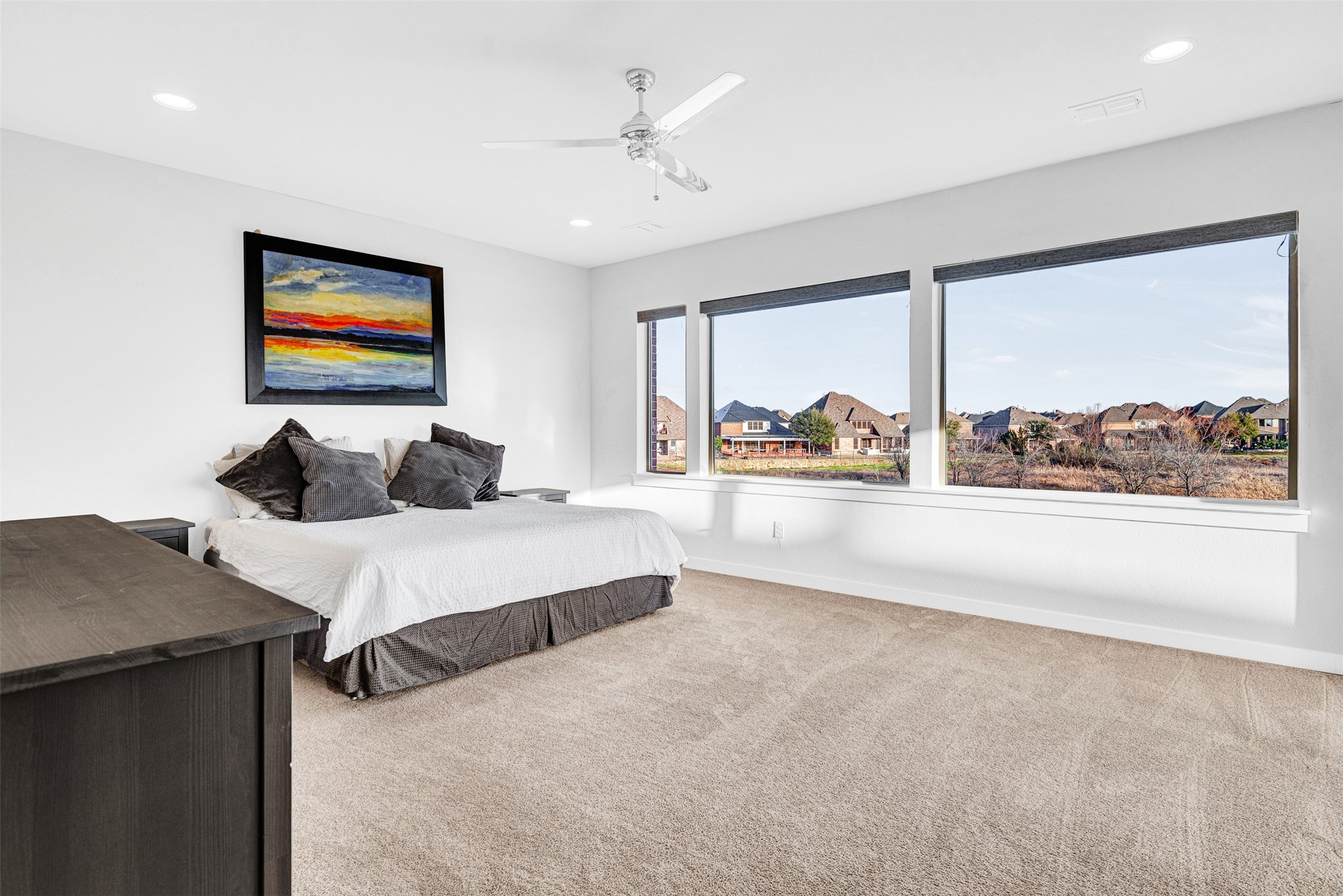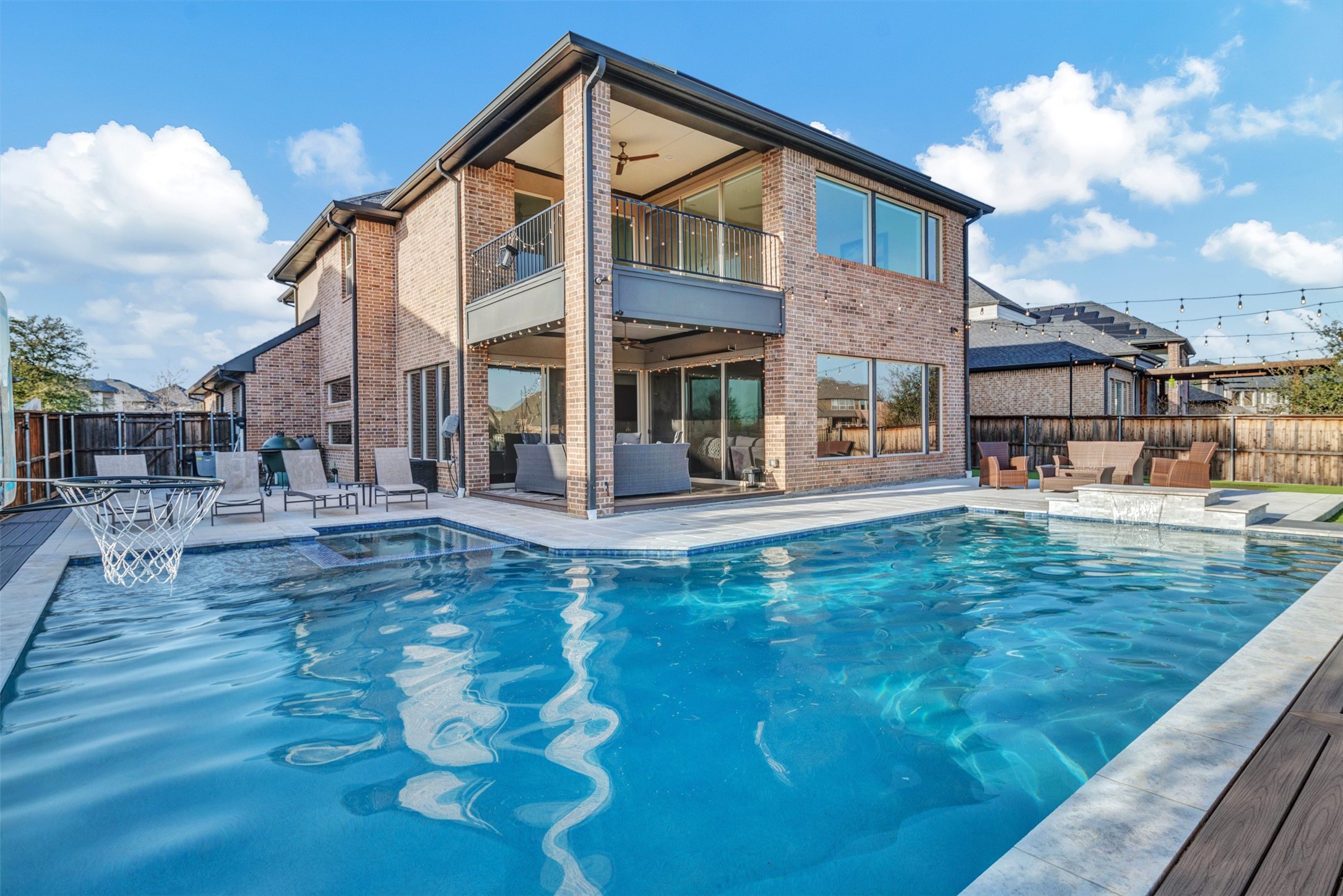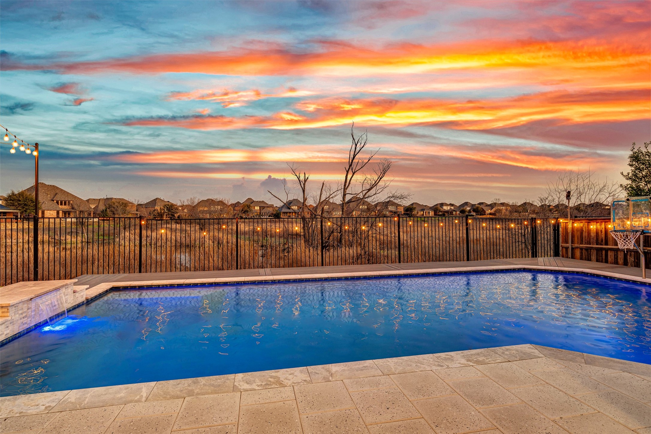 Nestled in a serene and sought-after Phillips Creek Ranch neighborhood in Frisco, this modern home sits on a premium lot that backs up to a peaceful greenbelt and pond. Featuring 5 bedrooms, 6 baths, an office, media room, game room, and a 3-car garage equipped with an electric car charging station, this home offers both luxury and functionality. On the main floor, you will find a dedicated office, media room, guest bedroom, and full bath. Additionally, the home is equipped with ENERGY-SAVING SOLAR PANELS that are PAID OFF providing a more sustainable and cost-efficient living experience! At the heart of the home lies the chef-inspired kitchen, complete with stainless steel appliances, including a gas stovetop, double ovens, microwave, refrigerator, large walk-in pantry, and an enormous center island. The kitchen seamlessly flows into the living room, which features a cozy fireplace and sliders that open up to your OUTDOOR OASIS, complete with an INVITING POOL and PUTTING GREEN--perfect for entertaining and relaxing. Upstairs, you'll find a spacious game room with a wet bar and beverage area, as well as 3 guest bedrooms. The primary bedroom overlooks the backyard and includes a private balcony, offering a peaceful retreat. The primary bathroom features a freestanding bathtub, a huge walk-in shower, and a generously sized walk-in closet--creating the perfect spa-like experience. Based on feedback, the SELLER IS OFFERING A $15K INTERIOR PAINT CREDIT to help make the home even more perfect for the buyer! Phillips Creek Ranch offers many amenities, including parks, playgrounds, walking and biking trails, a fitness center, and much more! This home is also just minutes from Dallas North Tollway and Sam Rayburn Tollway. Schedule your private showing today!