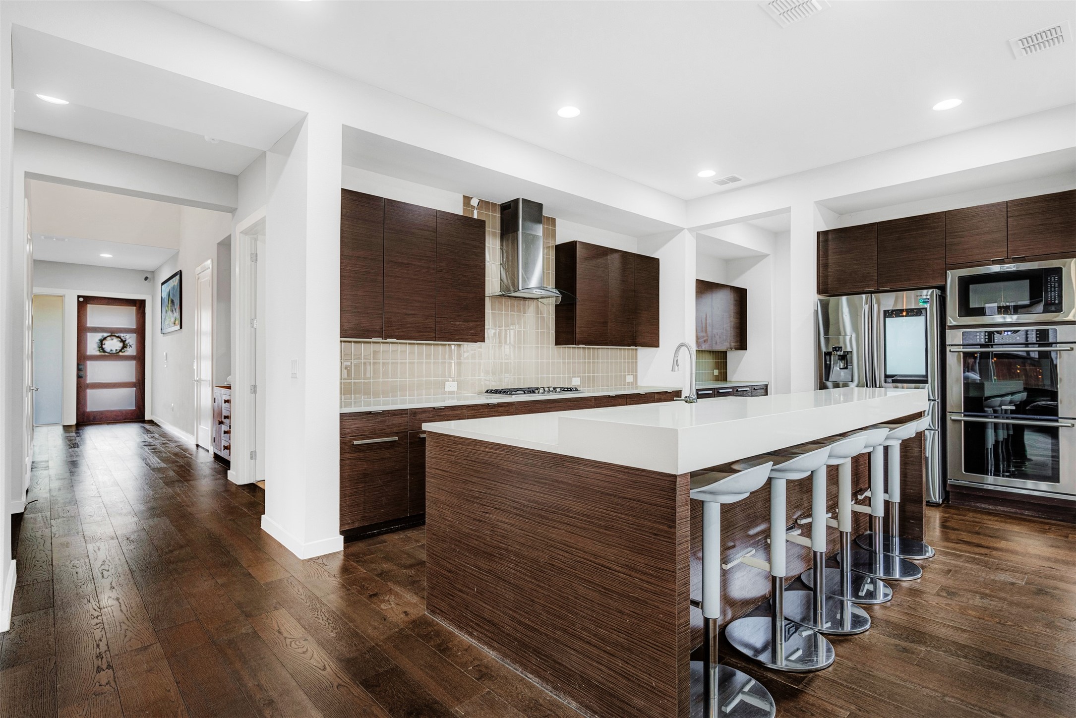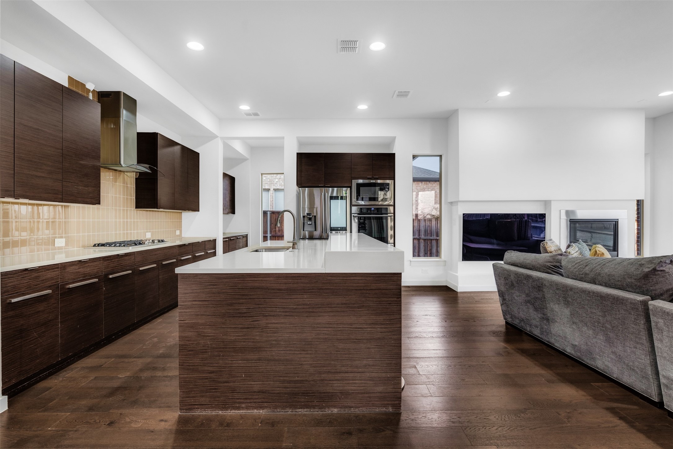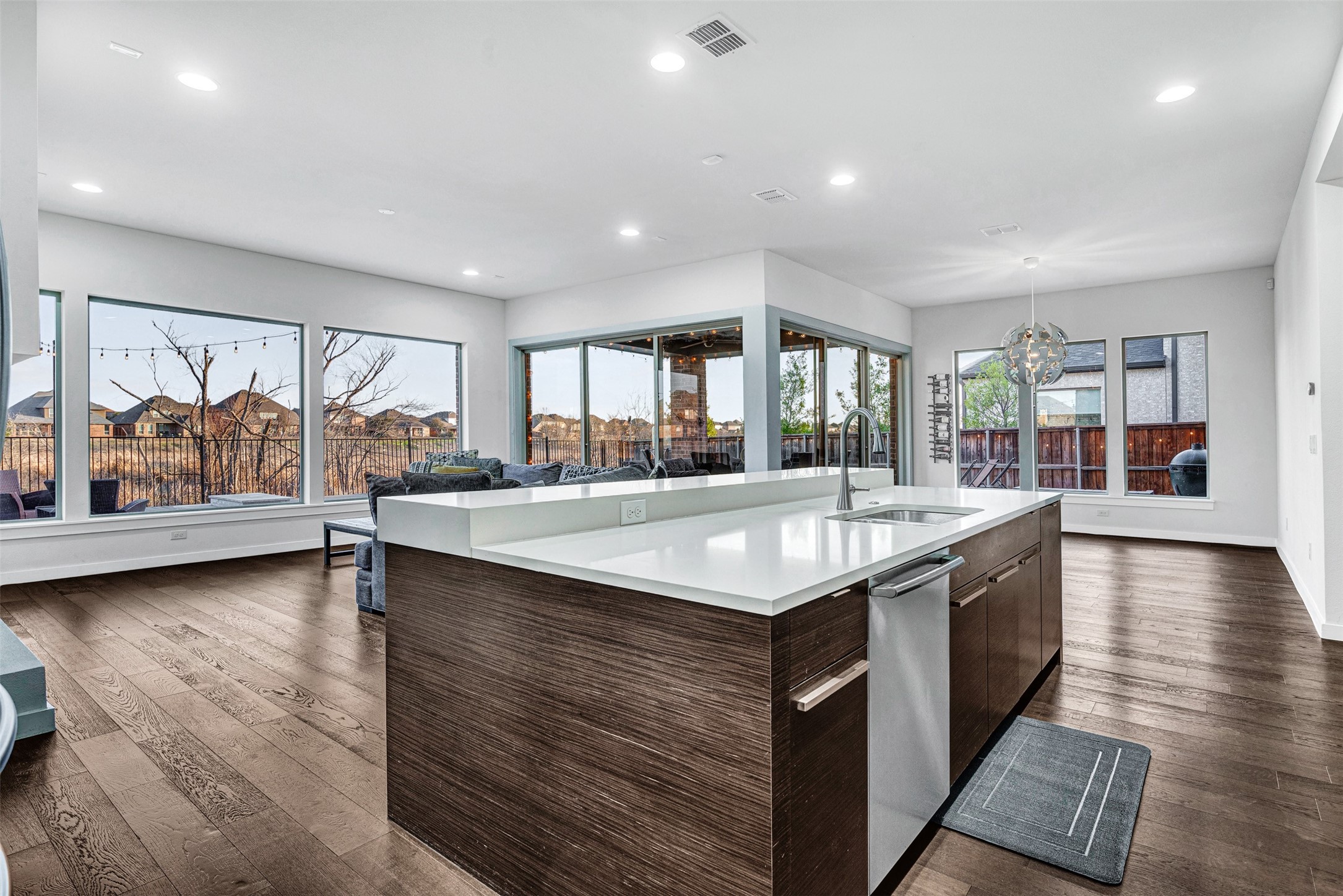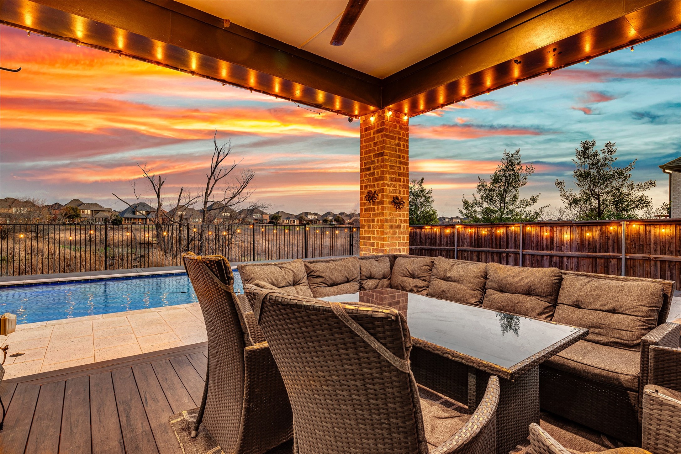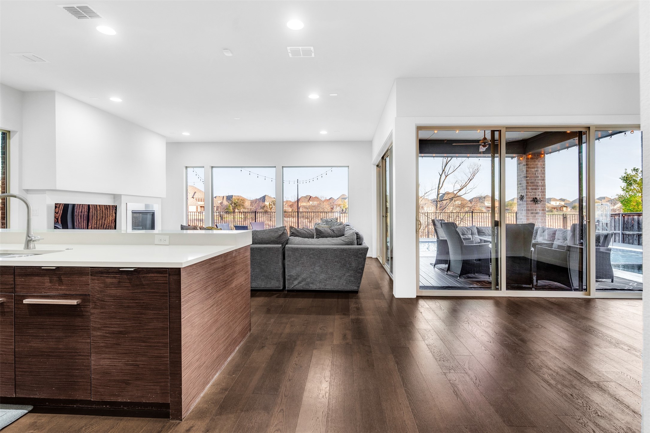 Nestled in a serene and sought-after Phillips Creek Ranch neighborhood in Frisco, this modern home sits on a premium lot that backs up to a peaceful greenbelt and pond. Featuring 5 bedrooms, 6 baths, an office, media room, game room, and a 3-car garage equipped with an electric car charging station, this home offers both luxury and functionality. On the main floor, you will find a dedicated office, media room, guest bedroom, and full bath. Additionally, the home is equipped with ENERGY-SAVING SOLAR PANELS that are PAID OFF providing a more sustainable and cost-efficient living experience! At the heart of the home lies the chef-inspired kitchen, complete with stainless steel appliances, including a gas stovetop, double ovens, microwave, refrigerator, large walk-in pantry, and an enormous center island. The kitchen seamlessly flows into the living room, which features a cozy fireplace and sliders that open up to your OUTDOOR OASIS, complete with an INVITING POOL and PUTTING GREEN--perfect for entertaining and relaxing. Upstairs, you'll find a spacious game room with a wet bar and beverage area, as well as 3 guest bedrooms. The primary bedroom overlooks the backyard and includes a private balcony, offering a peaceful retreat. The primary bathroom features a freestanding bathtub, a huge walk-in shower, and a generously sized walk-in closet--creating the perfect spa-like experience. Based on feedback, the SELLER IS OFFERING A $15K INTERIOR PAINT CREDIT to help make the home even more perfect for the buyer! Phillips Creek Ranch offers many amenities, including parks, playgrounds, walking and biking trails, a fitness center, and much more! This home is also just minutes from Dallas North Tollway and Sam Rayburn Tollway. Schedule your private showing today!